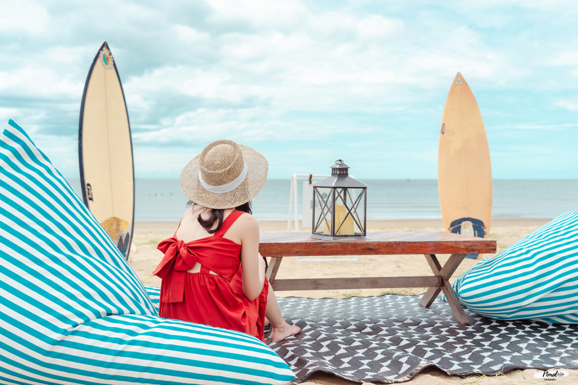 มุมถ่ายรูปของที่ร้านน่ารักมาก ไม่ว่าจะเป็นมุมปิกนิค หรือกระโจมริมทะเล ถ่ายรูปออกมาสวยมาก ไม่ต้องเตรียมพร๊อพไปเองเลย เพราะแค่พร๊อพของที่ร้านก็แน่นแล้ว